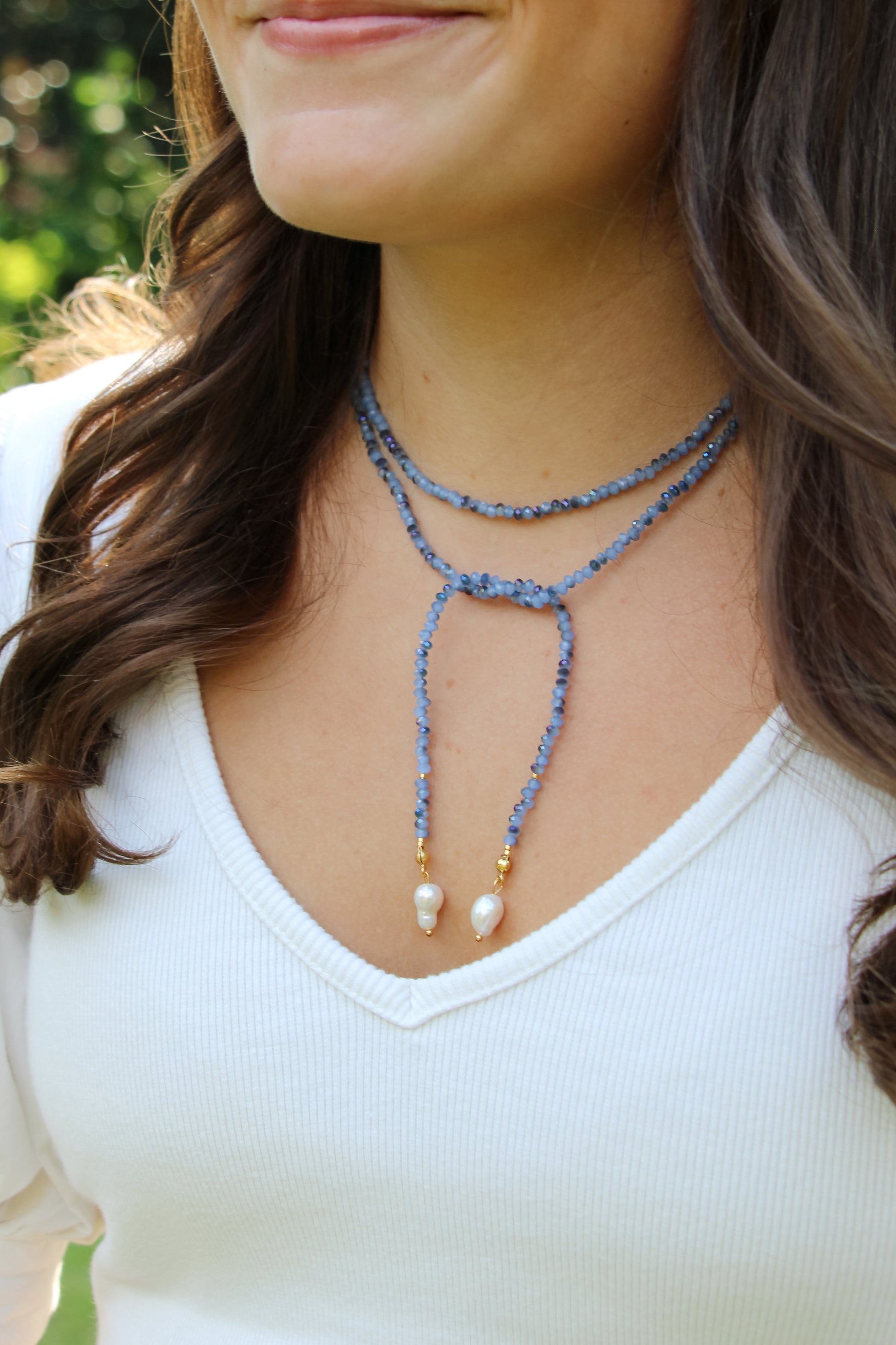 A new take on the beloved Wrap Pearl! The Mini Wrap can be worn in a variety of styles, with handcrafted 3mm beads and two baroque freshwater pearls. 14k gold plated accents and approximately 27' in length.