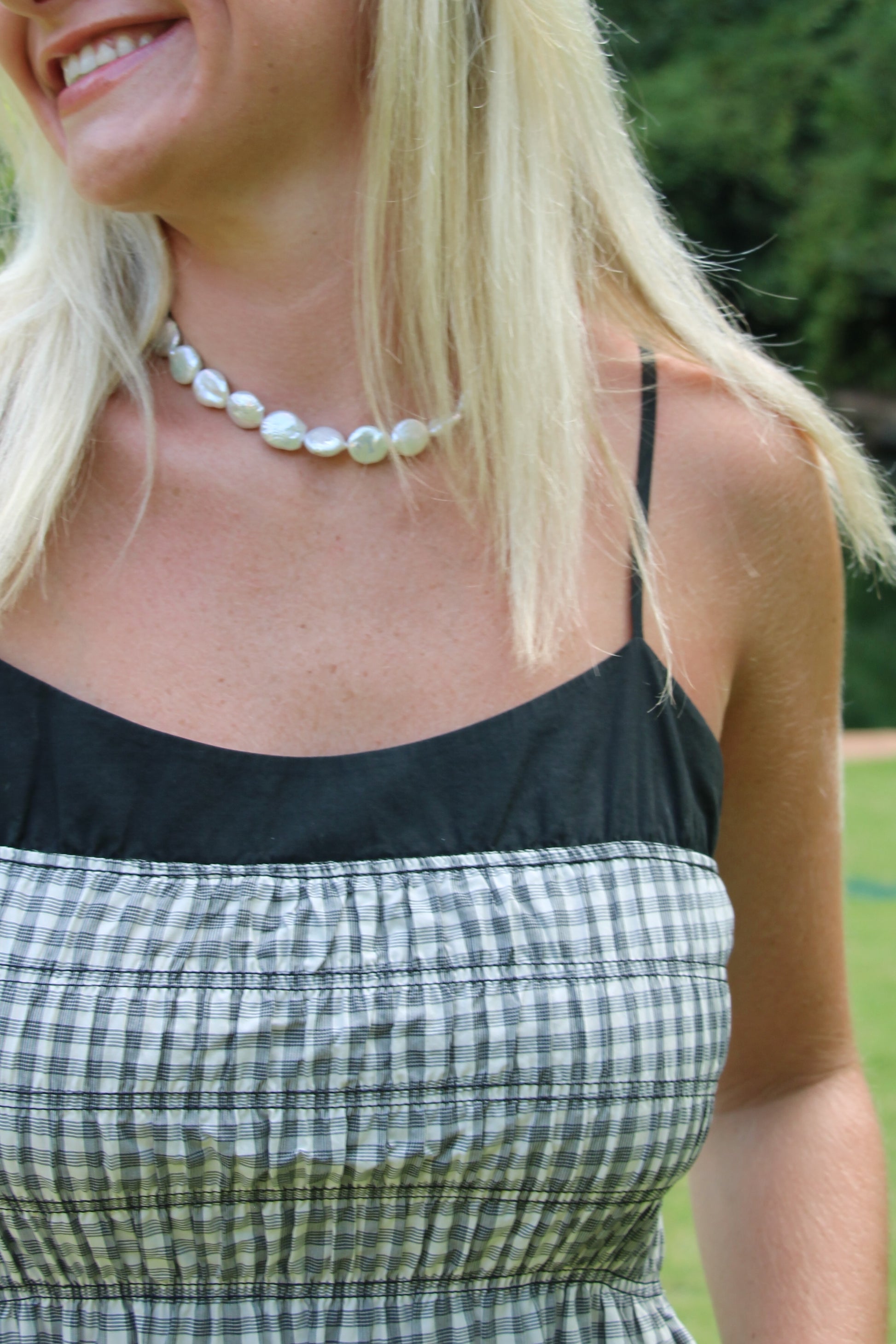 A stacking favorite! Real freshwater pearls with gold plated clasp attachment at back. Approximately 16-18' in length.