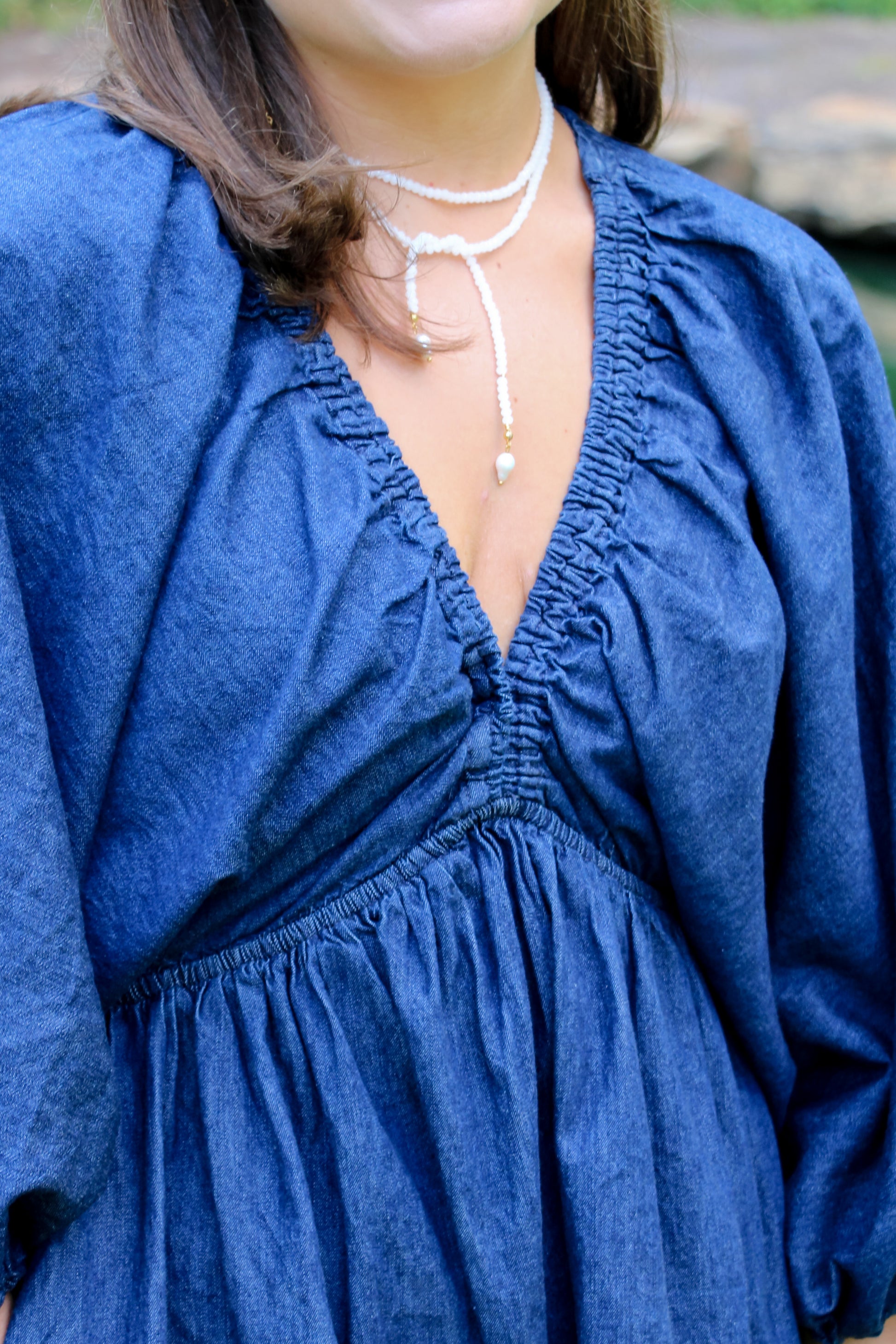 A new take on the beloved Wrap Pearl! The Mini Wrap can be worn in a variety of styles, with handcrafted 3mm beads and two baroque freshwater pearls. 14k gold plated accents and approximately 27' in length.