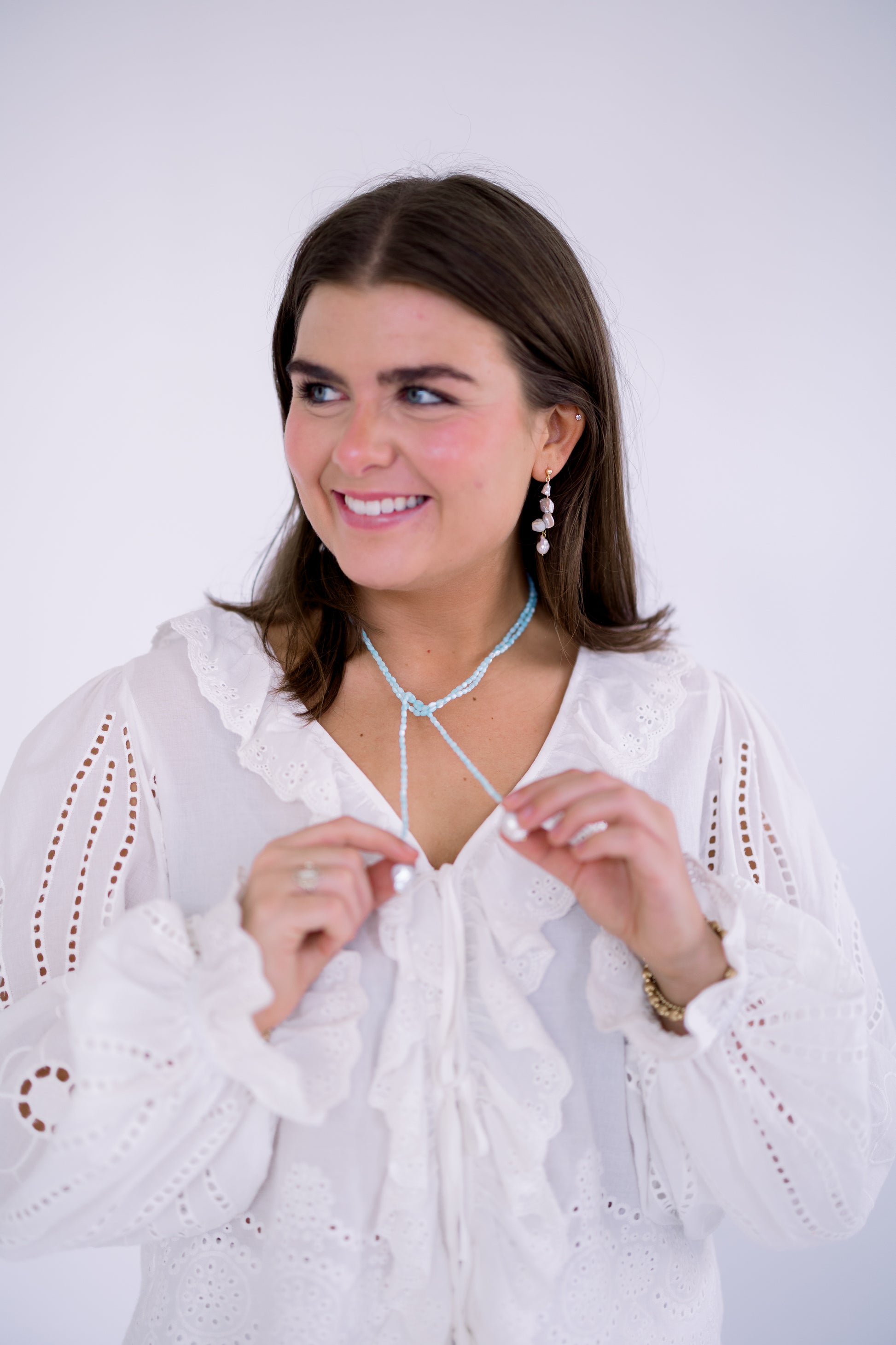 The Wrap Pearl can be worn in a variety of styles, with handcrafted 3mm beads and two baroque freshwater pearls. 14k gold plated accents and over 30' in length. Perfect for any celebration!
