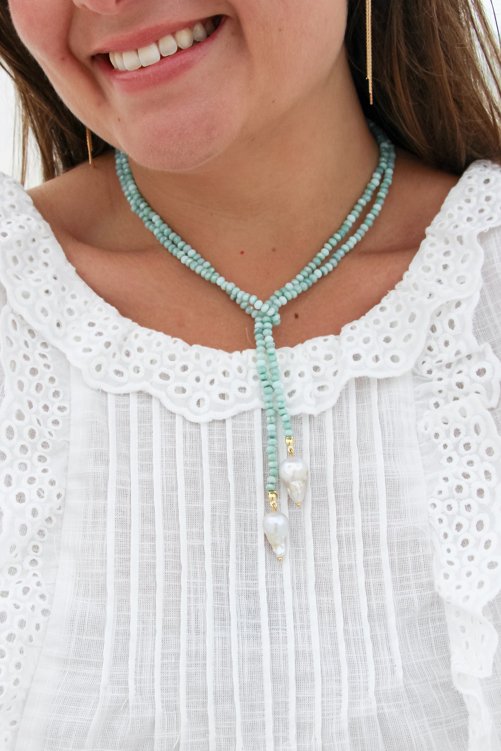 The Wrap Pearl can be worn in a variety of styles and is a great piece to dress up any outfit! Featuring freshwater pearls and crystal multifaceted beads. Over 30' in length.